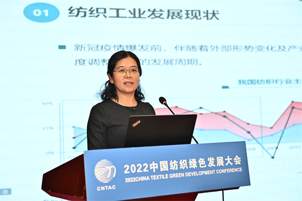 她表示,綠色發(fā)展是紡織行業(yè)高質(zhì)量發(fā)展的必然選擇,是鞏固優(yōu)勢(shì)產(chǎn)業(yè)領(lǐng)先地位的重要舉措,正在成為行業(yè)發(fā)展的新引擎、新動(dòng)能。針對(duì)行業(yè)未來(lái)綠色發(fā)展,她提出四點(diǎn)建議:一是加強(qiáng)頂層設(shè)計(jì)推進(jìn)紡織綠色低碳轉(zhuǎn)型;二是加強(qiáng)協(xié)同創(chuàng)新加大紡織綠色低碳技術(shù)應(yīng)用推廣;三是加快結(jié)構(gòu)優(yōu)化形成綠色低碳生產(chǎn)生活方式;四是完善標(biāo)準(zhǔn)認(rèn)證構(gòu)建綠色轉(zhuǎn)型服務(wù)體系。