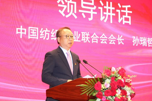 中國紡織工業(yè)聯(lián)合會會長孫瑞哲為咸陽紡織集團(tuán)授牌。