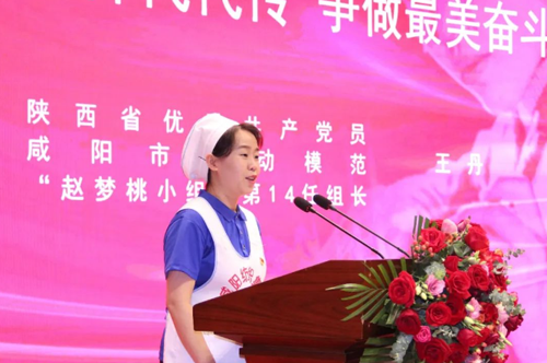 “趙夢桃小組”歷任組長也來到大會現(xiàn)場。為表達(dá)對老組長們的敬意與愛戴之情,“趙夢桃小組”現(xiàn)任組長王丹帶領(lǐng)她的姐妹們,精心準(zhǔn)備了鮮花獻(xiàn)給趙夢桃小組第3任組長王西京、第5任組長王廣玲、第7任組長韓玉梅、第8任組長劉育玲、第9任組長徐保鳳、第10任組長周惠芝、第11任組長劉小萍、第12任組長王曉榮、第13任組長何菲。