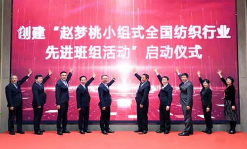 與會領(lǐng)導(dǎo)一起開啟創(chuàng)建“趙夢桃小組式全國紡織行業(yè)先進(jìn)班組活動”啟動儀式。