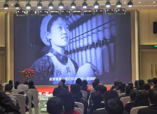 為紀(jì)念“趙夢桃小組”命名 60 周年,進(jìn)一步推動習(xí)近平總書記對“趙夢桃小組”親切勉勵貫徹落實,激勵全國紡織行業(yè)傳承弘揚(yáng)“夢桃精神”,為建設(shè)現(xiàn)代化紡織強(qiáng)國再立新功,4月25日,“夢桃精神代代傳,爭做最美奮斗者”紀(jì)念“趙夢桃小組”命名60周年大會在陜西省咸陽市舉行。會議由中國紡織工業(yè)聯(lián)合會、陜西省總工會、陜西省工業(yè)和信息化廳、中共咸陽市委員會、咸陽市人民政府主辦;中國財貿(mào)輕紡煙草工會支持;中國紡織職工思想政治工作研究會、咸陽市總工會、咸陽市國資委、咸陽紡織集團(tuán)有限公司承辦;陜西省紡織職工思想政治工作研究會 、西安工程大學(xué)“夢桃精神 代代相傳”——全國紡織思想政治教育基地、陜西省財貿(mào)金融輕工工會、西安紡織集團(tuán)有限責(zé)任公司、際華三五一三實業(yè)有限公司、陜西雅蘭紡織集團(tuán)有限公司協(xié)辦。 中國紡織工業(yè)聯(lián)合會會長孫瑞哲、原會長王天凱、黨委副書記陳偉康、原副會長楊紀(jì)朝,中國紡聯(lián)副秘書長、外事辦公室主任袁紅萍,中國紡聯(lián)黨委辦公室主任、中國紡織職工思想政治工作研究會會長邢冠蕾,中國財貿(mào)輕紡煙草工會二級巡視員呂杰,陜西省人民政府辦公廳副主任徐剛,陜西省總工會黨組副書記、常務(wù)副主席王軍,陜西省工業(yè)和信息化廳黨組成員、陜西經(jīng)濟(jì)聯(lián)合會會長楊悅,中共咸陽市委書記夏曉中,中共咸陽市委副書記、市人民政府市長冷勁松,咸陽市人大常委會副主任、市總工會主席田一泓,陜西省人民政府國有資產(chǎn)管理委員會黨委副書記、一級巡視員郁偉,西安工程大學(xué)黨委副書記趙小峰,陜西省思想政治工作研究會秘書長張虎鳴,陜西省財貿(mào)金融輕工工會主席趙亮,陜西省紡織職工思想政治工作研究會會長侯代會,以及來自中國紡聯(lián)、陜西省有關(guān)部門、咸陽市委、咸陽市人民政府有關(guān)負(fù)責(zé)同志,“趙夢桃小組”老組長代表,各省市紡織協(xié)會、排頭企業(yè)、產(chǎn)業(yè)集群代表,紡織高校及陜西省紡織服裝行業(yè)、協(xié)會代表,全國勞模、全國紡織優(yōu)秀班組長代表,咸陽紡織集團(tuán)干部職工代表等200余人與會。