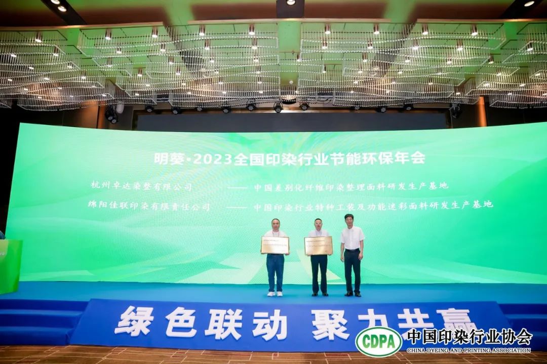 同時,林琳還宣讀了《關(guān)于批準(zhǔn)杭州卓達(dá)染整有限公司等單位繼續(xù)作為中國印染行業(yè)協(xié)會產(chǎn)品研發(fā)生產(chǎn)基地的決定》,經(jīng)有關(guān)公司申請、協(xié)會研究決定,同意杭州卓達(dá)染整有限公司繼續(xù)作為“中國差別化纖維印染整理面料研發(fā)生產(chǎn)基地”,綿陽佳聯(lián)印染有限責(zé)任公司繼續(xù)作為“中國印染行業(yè)特種工裝及功能迷彩面料研發(fā)生產(chǎn)基地”,并進(jìn)行了授牌。