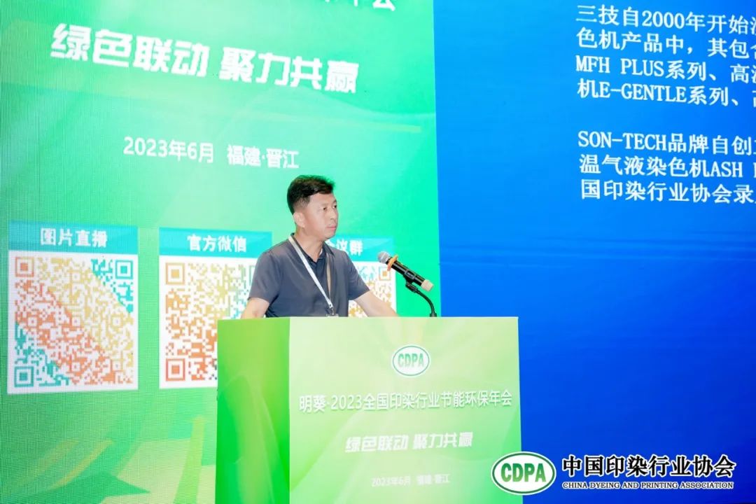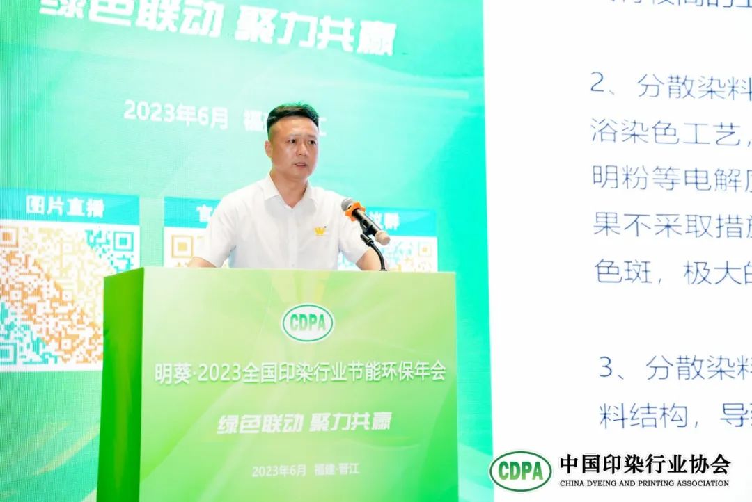 為加快構(gòu)建綠色低碳循環(huán)發(fā)展的產(chǎn)業(yè)體系,深入推進(jìn)行業(yè)綠色低碳轉(zhuǎn)型和高質(zhì)量發(fā)展,6月19日,“明葵·2023全國印染行業(yè)節(jié)能環(huán)保年會”在福建省晉江市隆重舉行。本次會議以“綠色聯(lián)動 聚力共贏”為主題,圍繞國家最新環(huán)境管理政策、印染行業(yè)綠色低碳技術(shù)和裝備研發(fā)應(yīng)用、高效印染廢水廢氣處理技術(shù)等進(jìn)行了全方位、多層次、立體化的探討和交流。會上還發(fā)布了《第十六批中國印染行業(yè)節(jié)能減排先進(jìn)技術(shù)推薦目錄》。