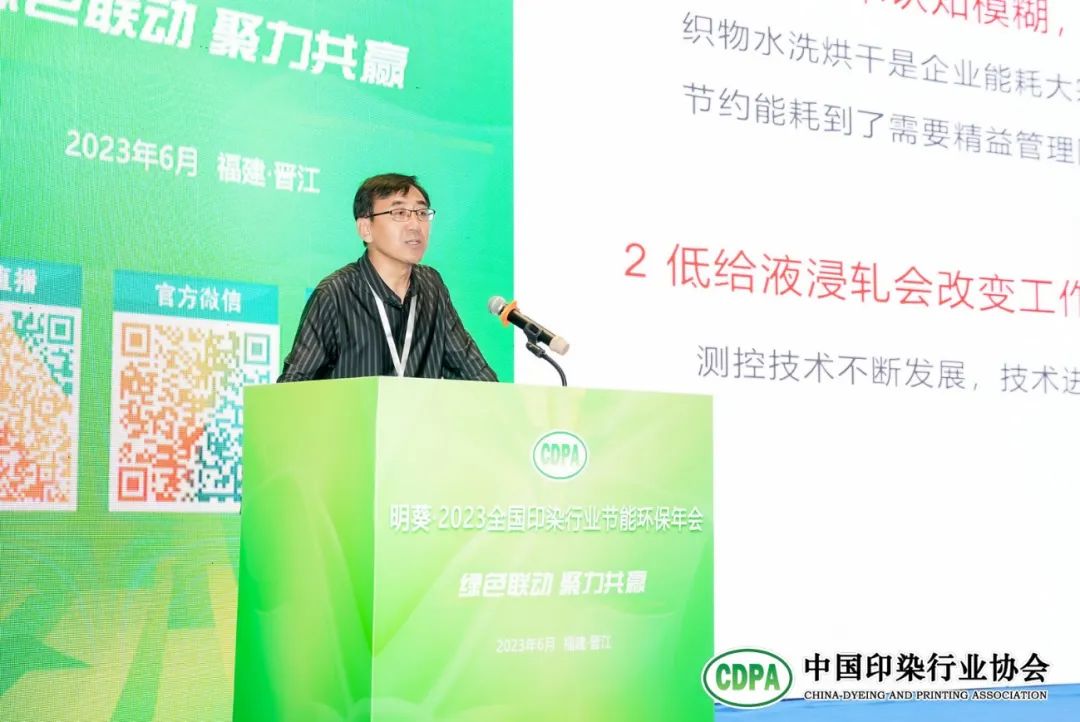 工業(yè)和信息化部消費(fèi)品工業(yè)司副處長、二級調(diào)研員縱瑞龍在致辭中表示,近年來我國印染行業(yè)積極踐行綠色發(fā)展理念,能耗水耗不斷降低,綠色化智能化設(shè)備得到普及應(yīng)用,行業(yè)發(fā)展水平明顯提升,推動綠色發(fā)展不斷深入。他指出,目前我國印染行業(yè)在節(jié)能環(huán)保方面還有較大提升空間,必須進(jìn)一步加快綠色改造:一是要積極穩(wěn)妥地推進(jìn)“雙碳”工作,二是全面推進(jìn)污染防治,三是大力倡導(dǎo)紡織品服裝的綠色消費(fèi)。