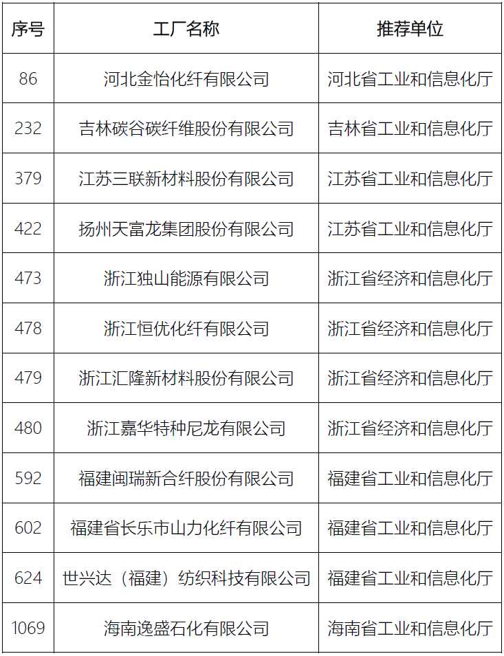 多家化纖相關企業入選工信部2024年度綠色工廠名單