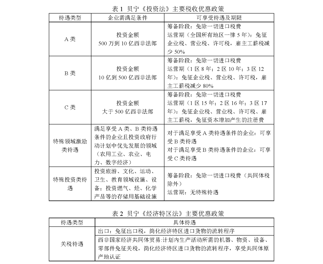 《投資法》《經濟特區法》《中小微企業發展法》是涉及外資優惠政策最重要的三項法律,其中《投資法》根據投資地區和金額不同,給予企業5到17年不等的免稅待遇,具體政策見表1,《經濟特區法》規定的主要優惠政策見表2。