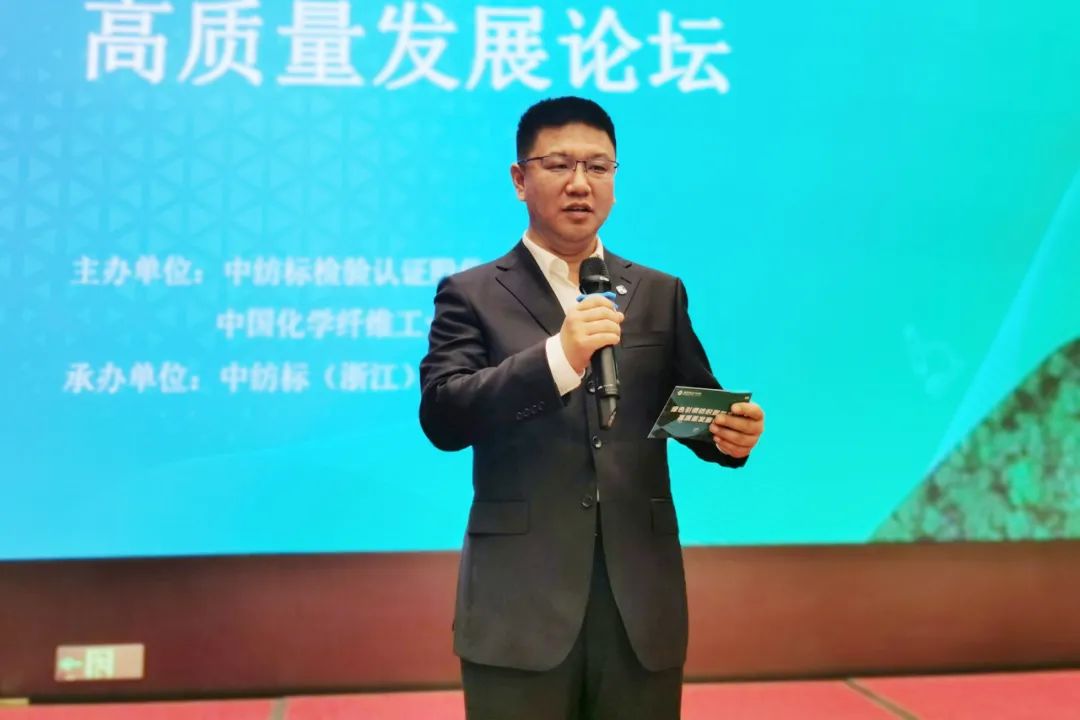 中國(guó)化學(xué)纖維工業(yè)協(xié)會(huì)副會(huì)長(zhǎng)靳高嶺、副總工程師李德利、副總經(jīng)濟(jì)師張凌清、行業(yè)發(fā)展部副主任劉世揚(yáng),中紡標(biāo)副總經(jīng)理郭文松、技術(shù)顧問田媛,浙江中紡標(biāo)總經(jīng)理王守宇等領(lǐng)導(dǎo)及嘉賓出席活動(dòng)。論壇由中紡標(biāo)認(rèn)證事業(yè)部副總經(jīng)理劉明主持。
