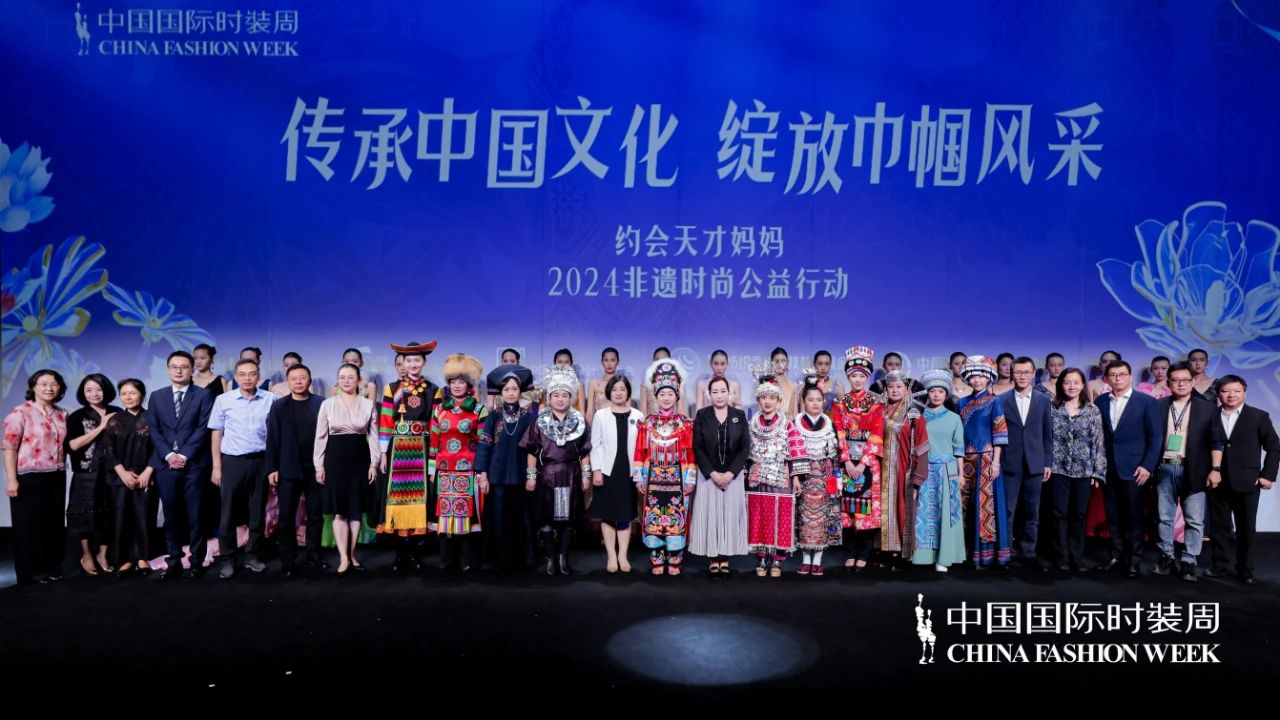 9月10日,SS25中國國際時裝周期間,「傳承中國文化 綻放巾幗風(fēng)采」約會天才媽媽2024非遺時尚公益行動在北京成功舉行。