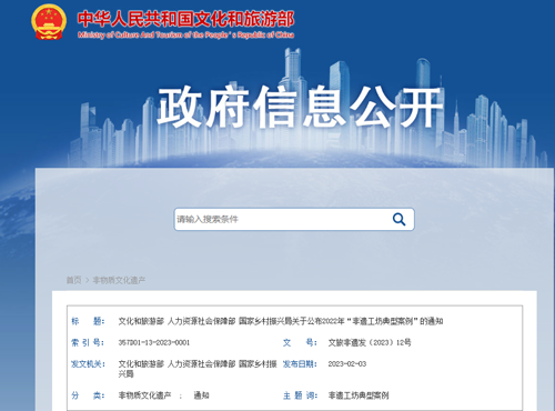 2月3日,文化和旅游部、人力資源社會(huì)保障部、國(guó)家鄉(xiāng)村振興局發(fā)布了2022年“非遺工坊典型案例”名單,確定了66個(gè)2022年“非遺工坊典型案例”,其中超四成為刺繡等紡織非遺工坊。