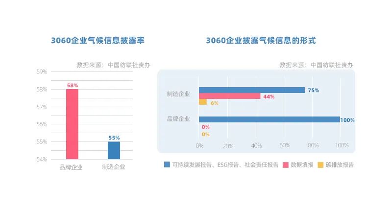 3060企業中超過半數企業已開展氣候信息披露。品牌企業主要通過發布企業年度可持續發展報告進行披露,制造企業也通過國內外第三方平臺進行數據填報。企業還通過開展各類低碳公眾宣傳活動傳遞可持續理念。活動內容包括理念宣導、環保產品和企業氣候行動的宣傳以及開展環保回收等,形式覆蓋線上和線下,受眾群體包括消費者、學生和行業伙伴等。