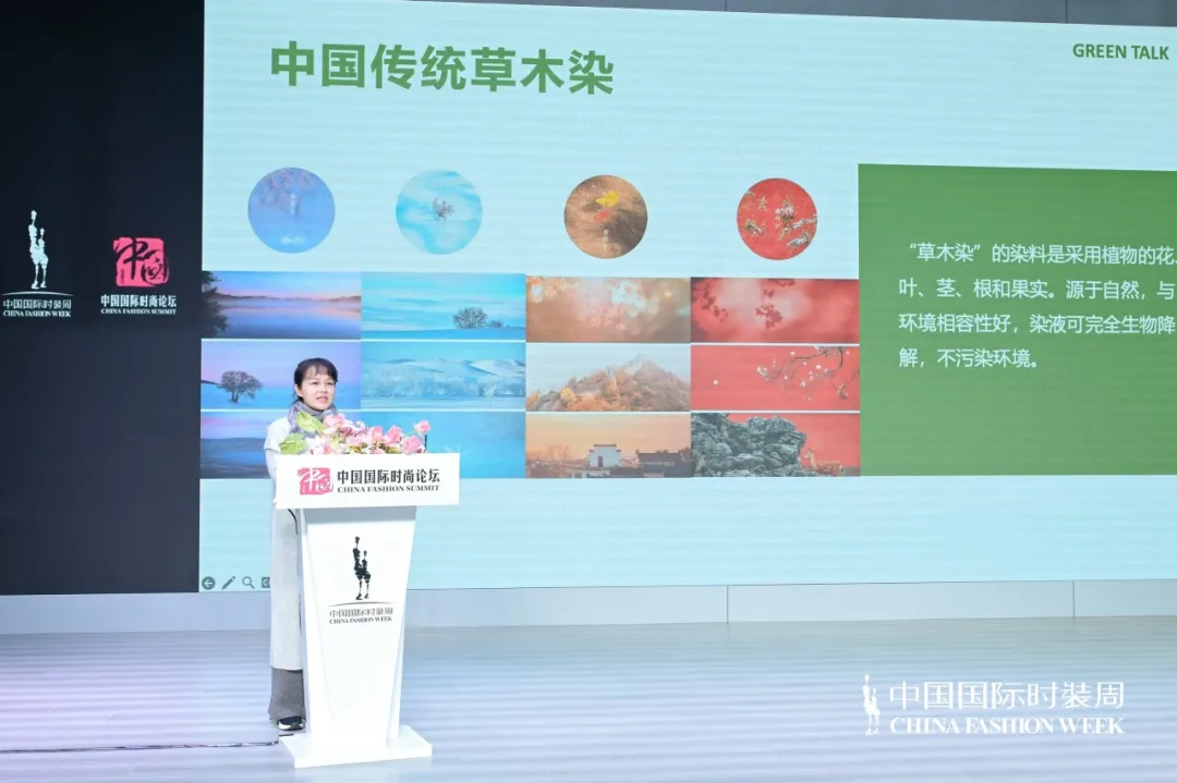 來自北京服裝學(xué)院的孫雪飛教授提出:“設(shè)計(jì)師的角色十分重要,是鏈接產(chǎn)業(yè)上下游的中間環(huán)節(jié)。” 她強(qiáng)調(diào)了可持續(xù)設(shè)計(jì)的重要性,提出了將中國(guó)傳統(tǒng)智慧與現(xiàn)代可持續(xù)實(shí)踐相結(jié)合的觀點(diǎn)。孫教授介紹了一些古老概念,例如中國(guó)的“天人合一”理念和傳統(tǒng)草木染技術(shù)。提出了可持續(xù)設(shè)計(jì)的實(shí)踐方法,例如使用循環(huán)再生材料、傳統(tǒng)手工藝、關(guān)注和保護(hù)少數(shù)民族文化多樣性,以及通過設(shè)計(jì)創(chuàng)新來減少紡織廢物。孫雪飛教授展示了多種可持續(xù)設(shè)計(jì)策略,如零浪費(fèi)設(shè)計(jì)、升級(jí)再造、一衣多穿、和重構(gòu),目的是在整個(gè)紡織服裝產(chǎn)業(yè)鏈中實(shí)現(xiàn)可持續(xù)性,包括使用循環(huán)再生材料、傳統(tǒng)手工藝、保護(hù)少數(shù)民族文化多樣性,以及通過設(shè)計(jì)創(chuàng)新來減少紡織廢物,并強(qiáng)調(diào)了可持續(xù)設(shè)計(jì)在未來時(shí)尚產(chǎn)業(yè)中的重要性。