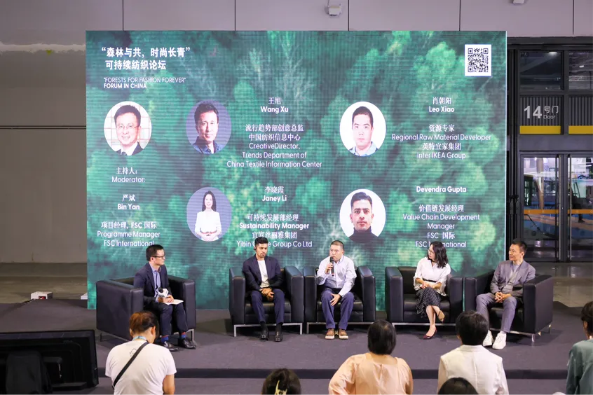 如何擴(kuò)大林基纖維在紡織行業(yè)的應(yīng)用范圍?如何在追求時尚的同時實現(xiàn)森林資源的可持續(xù)發(fā)展?如何通過推動紡織材料的循環(huán)利用及降低生產(chǎn)過程中的可持續(xù)影響?如何促進(jìn)全產(chǎn)業(yè)鏈上下游伙伴合力提高行業(yè)“含綠量”?在先鋒對話環(huán)節(jié),FSC國際項目經(jīng)理嚴(yán)斌與中國紡織信息中心流行趨勢部創(chuàng)意總監(jiān)王旭、宜賓絲麗雅集團(tuán)有限公司可持續(xù)發(fā)展部經(jīng)理李曉霞、英特宜家集團(tuán)東亞區(qū)資源管理部門資源專家肖朝陽、FSC國際價值鏈發(fā)展經(jīng)理Devendra Gupta等嘉賓分享最新研究成果和實踐經(jīng)驗,激發(fā)創(chuàng)新思維,推動更多環(huán)保理念和技術(shù)在產(chǎn)業(yè)鏈各環(huán)節(jié)落地生花。