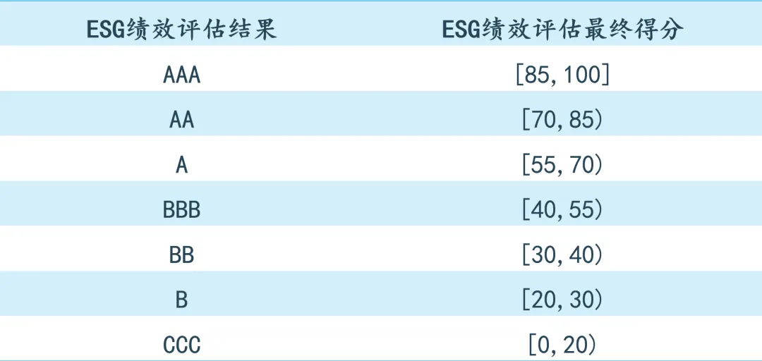 為保證中國(guó)紡織服裝行業(yè)ESG評(píng)估的客觀性和可比性,本方法論的指標(biāo)賦值遵循定量和客觀原則。在前期大量理論分析的基礎(chǔ)上,結(jié)合獲取到數(shù)據(jù)的特點(diǎn),以均衡、適用原則設(shè)置各指標(biāo)的權(quán)重,自下而上計(jì)算加權(quán)得到一級(jí)指標(biāo)、二級(jí)指標(biāo)的分項(xiàng)得分,最終計(jì)算出ESG評(píng)估綜合得分。得分越高,說明參評(píng)主體績(jī)效表現(xiàn)越好。