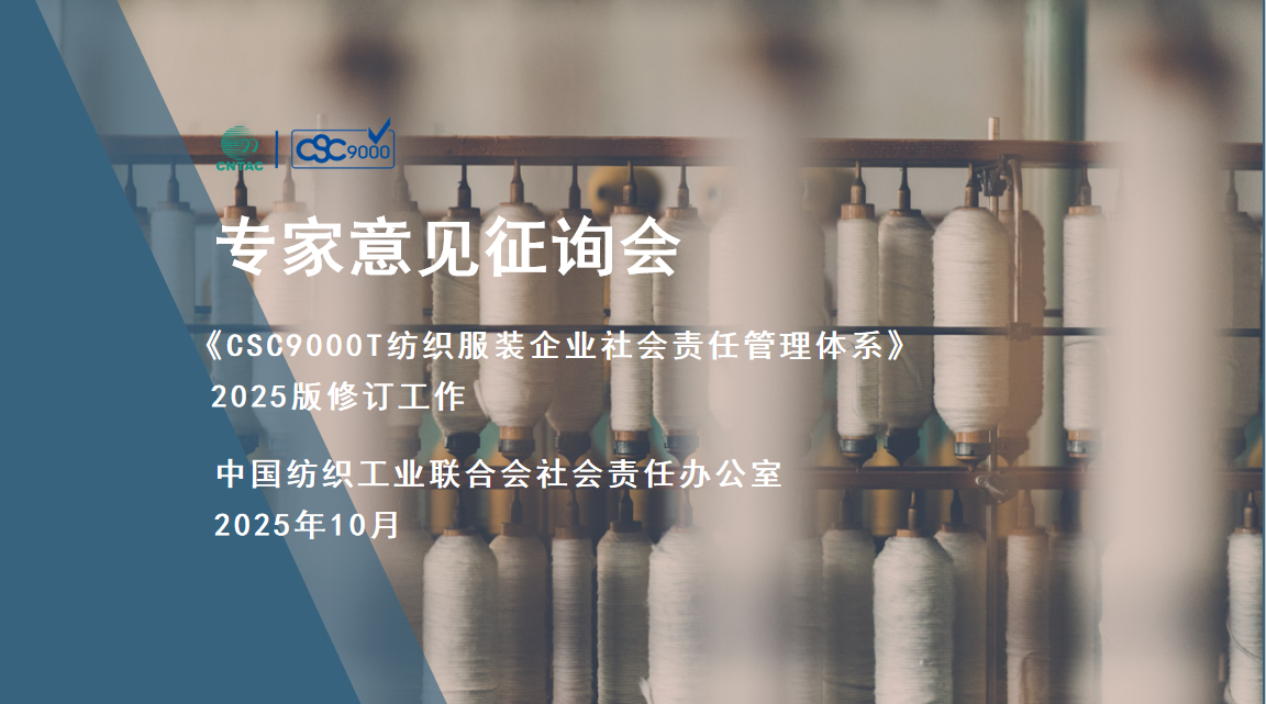 中國紡織工業聯合會社會責任辦公室在線上成功召開“《CSC9000T紡織服裝企業社會責任管理體系(2025版)》專家意見征詢會”。