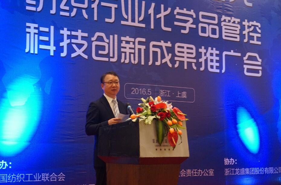 5月13日在浙江省紹興市上虞區(qū)舉行舉行的“紡織之光”紡織行業(yè)化學(xué)品管控重點成果現(xiàn)場推廣活動中,中國紡織工業(yè)聯(lián)合會社會責(zé)任辦公室副主任閻巖宣布了