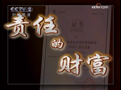 2009年11月21日晚21:55分,中央電視臺(tái)財(cái)經(jīng)頻道(CCTV2)中國(guó)財(cái)經(jīng)報(bào)道欄目以《責(zé)任的財(cái)富》為題,就企業(yè)社會(huì)責(zé)任問題進(jìn)行了長(zhǎng)達(dá)近60分鐘的深度報(bào)道。報(bào)道對(duì)中國(guó)紡織服裝行業(yè)在金融危機(jī)背景下堅(jiān)持開展社會(huì)責(zé)任建設(shè)推廣