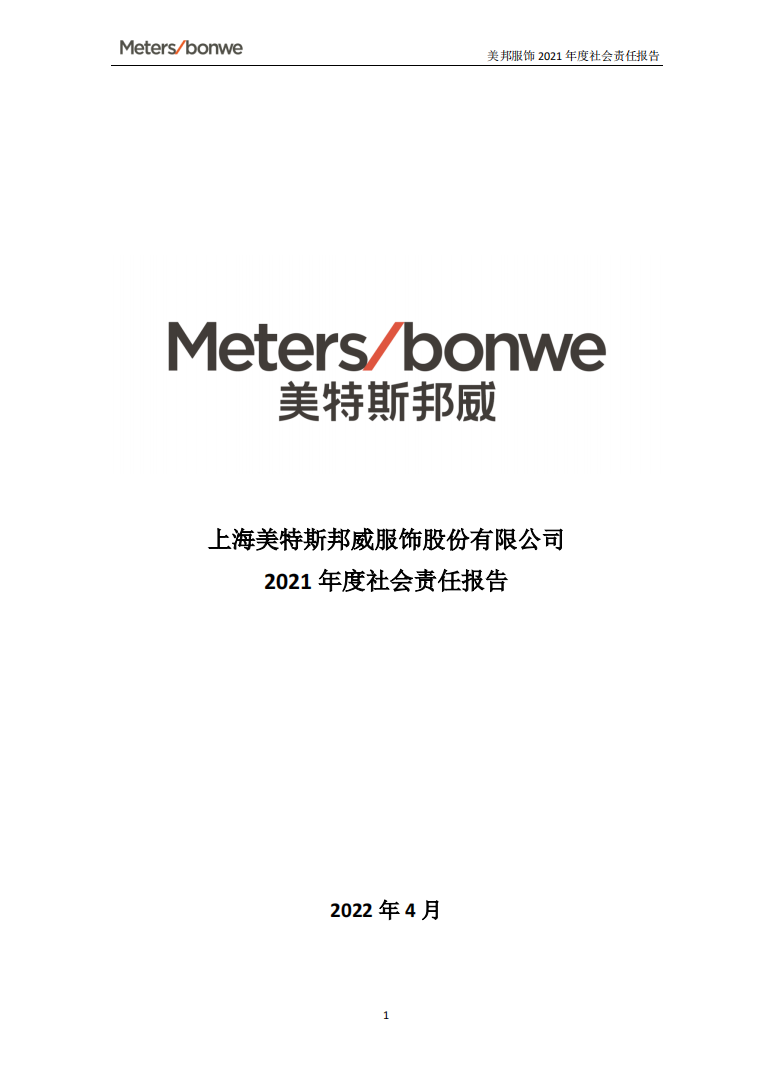 上海美特斯邦威服飾股份有限公司2021年度社會責任報告